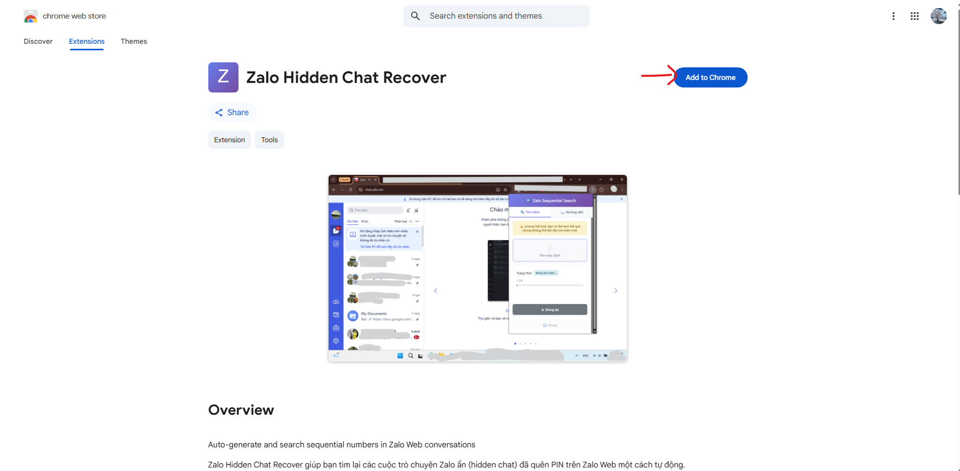Truy cập link dưới đây để cài đặt extension "Lấy lại mã PIN Zalo" trực tiếp từ Chrome Web Store cho trình duyệt Chrome/Edge.